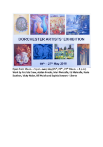 Come and view the work of our local talented artists. Open from 10a.m. – 5 p.m. every day (25th, 26th , 27th 10a.m. – 4 p.m.) Work by Patricia Drew, Adrian Brooks, Mari Metcalfe, Ed Metcalfe, Rosie Southon, Vicky Nolan, Bill Maish and Sophia Stewart – Liberty
