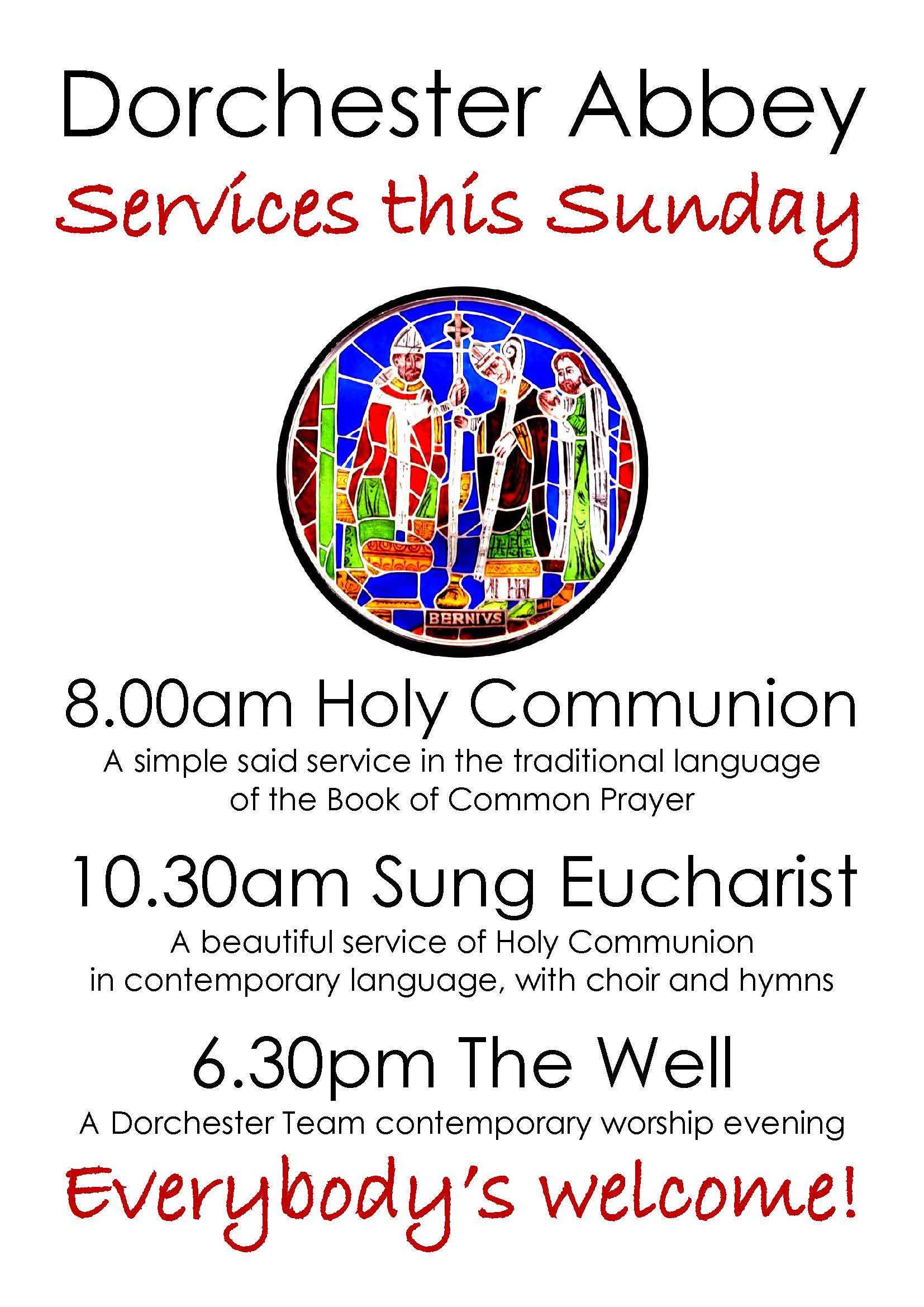 A Service of Morning Prayer is at Dorchester Abbey every Tuesday at 10.30am. Everyone is welcome.